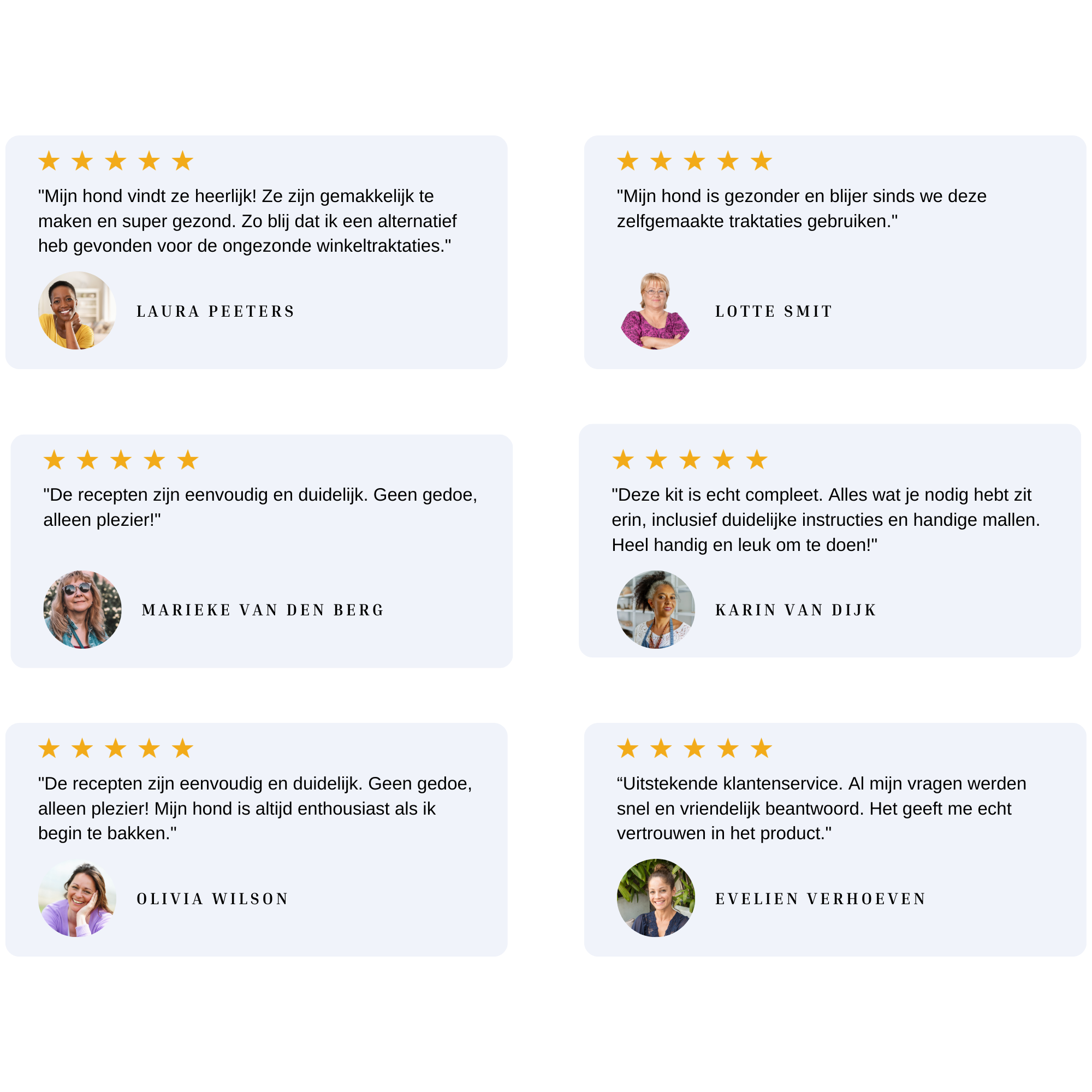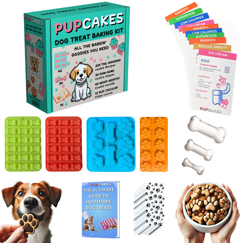 Een complete kit met alles wat je nodig hebt om gezonde hondensnacks te maken. Inclusief mallen, vormpjes, recepten, tutorials en veel meer! Start nu en verwen je pup! 🐶