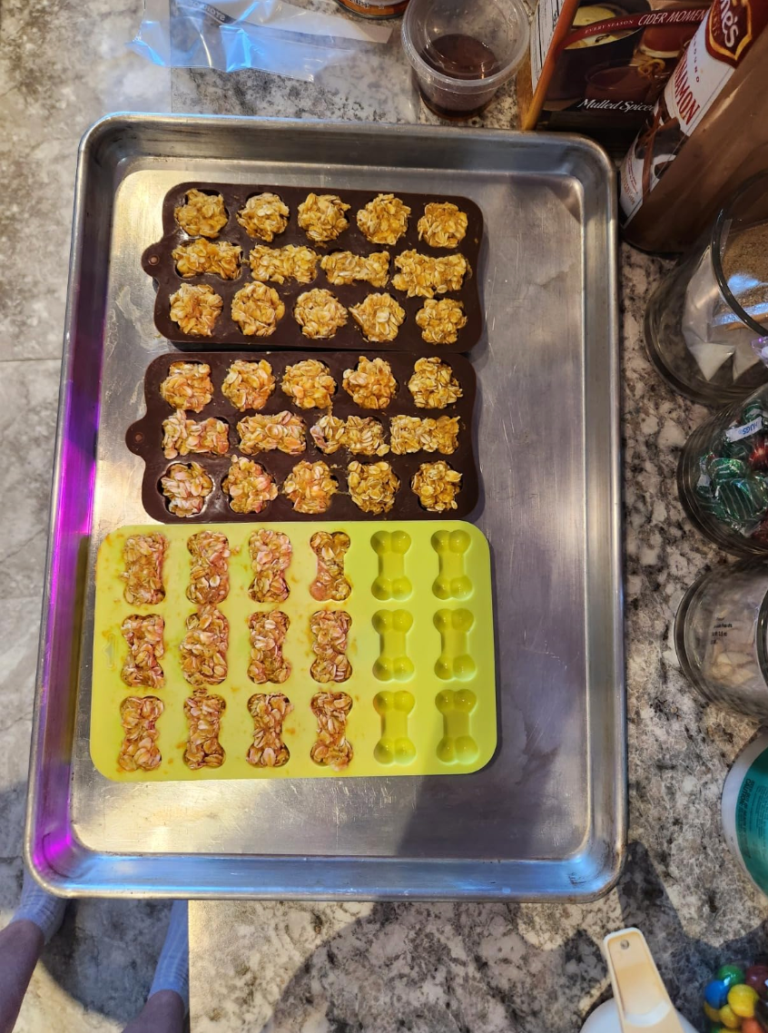 "We kochten deze set een aantal weken geleden en het is een echt plezier geweest om te bakken dusver! Ik kan op voorhand koekjes maken met zijn medicijn in, ze invriezen en in zijn eten mengen wanneer ik wil."